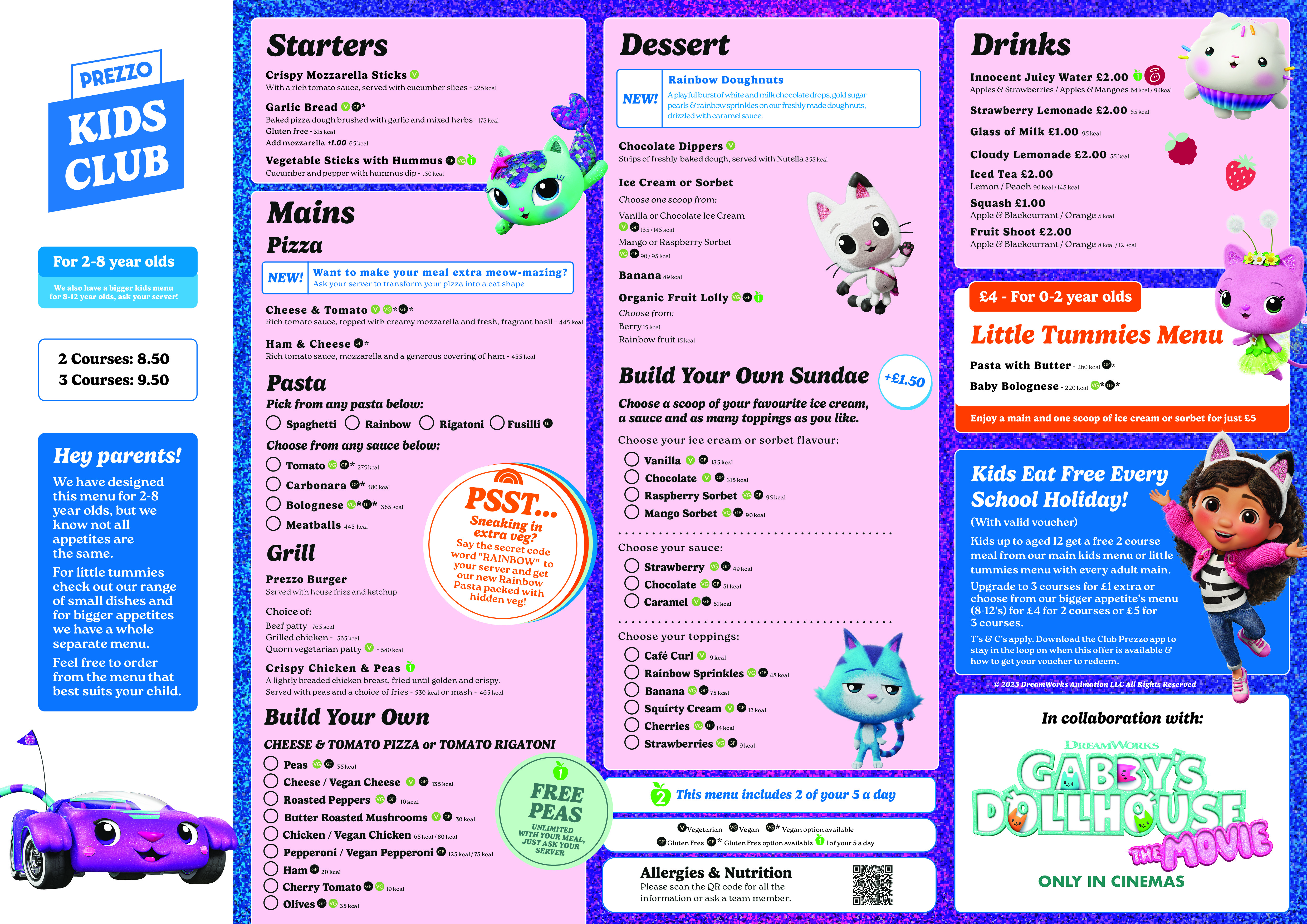 Parents – we've got you. Say the secret code word "RAINBOW" to your server, and we'll swap in our hidden-veg rainbow pasta, helping sneak in one of their 5-a-day without the fuss.