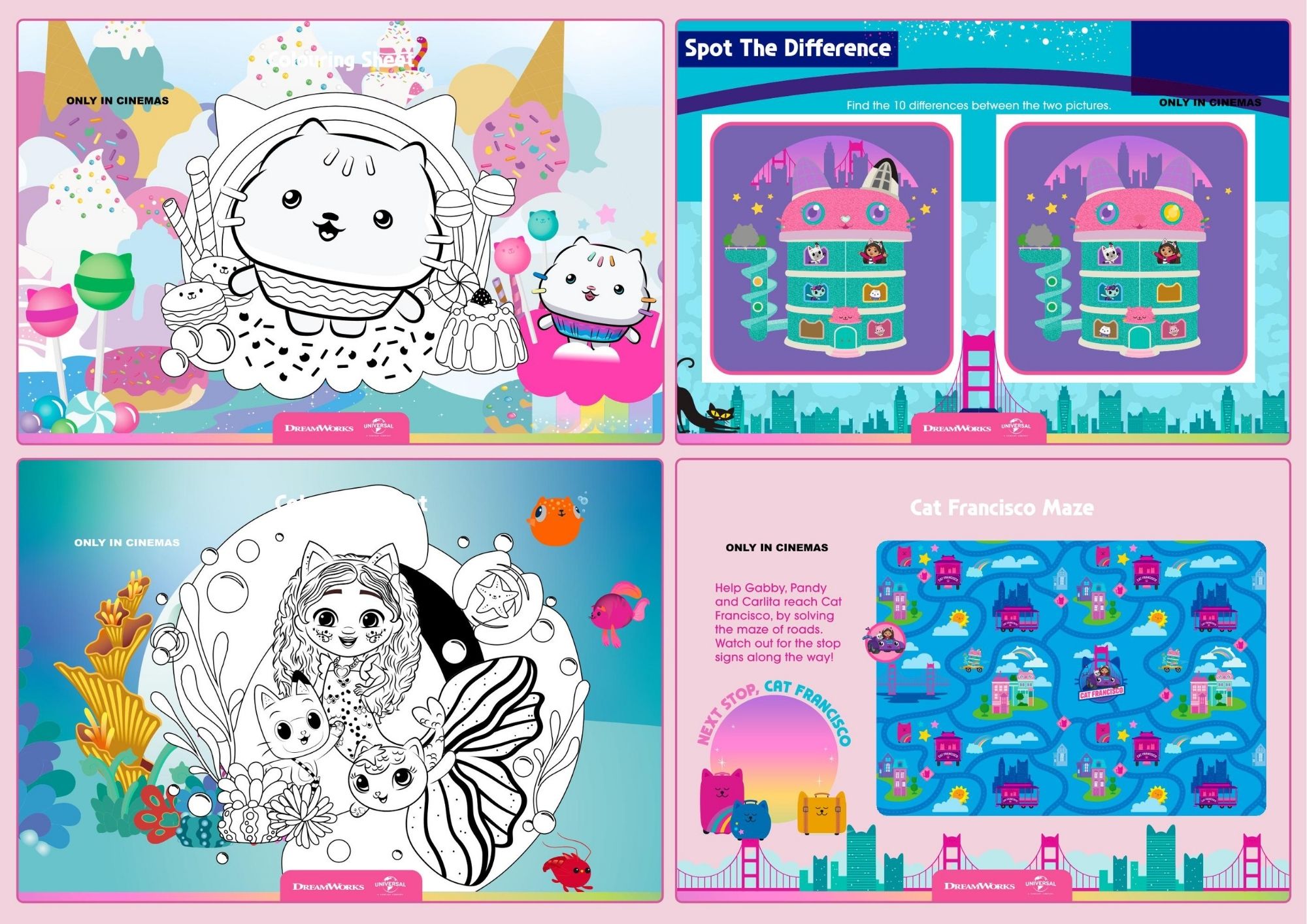 From Gabby's Dollhouse: The Movie inspired cat ears and activity sheets, there's fun at the table for everyone.