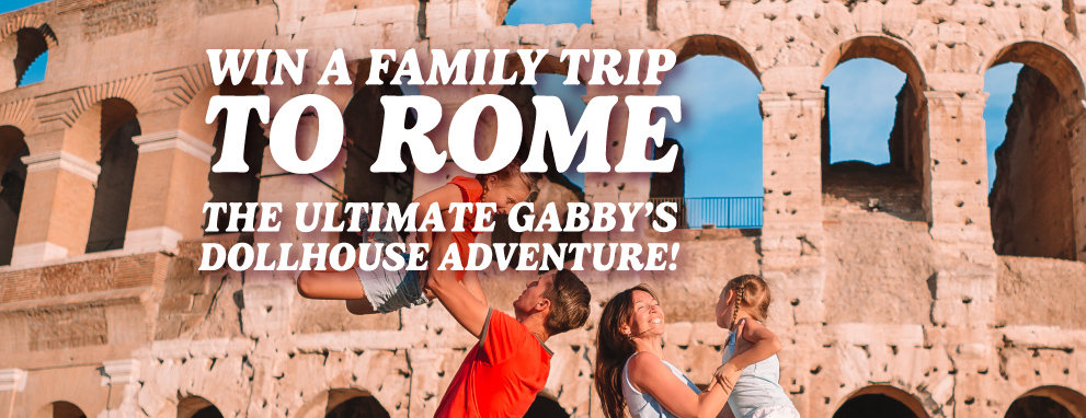 Enter for the chance to win a Meow-mazing family adventure to Rome, inspired by Gabby's Dollhouse: The Movie. Magical memories, playful surprises, and plenty of shimmer await.